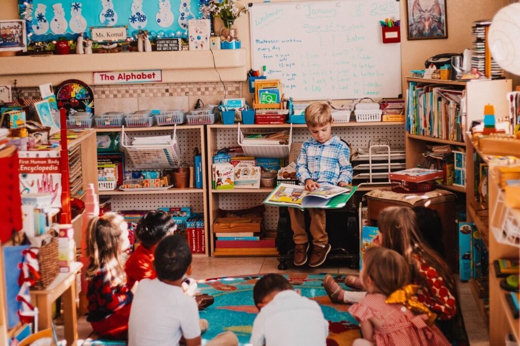 Language development is a concern of the entire Montessori classroom. Many activities in other areas, as well as with a large group, foster vocabulary development, communication skills, writing and reading readiness.